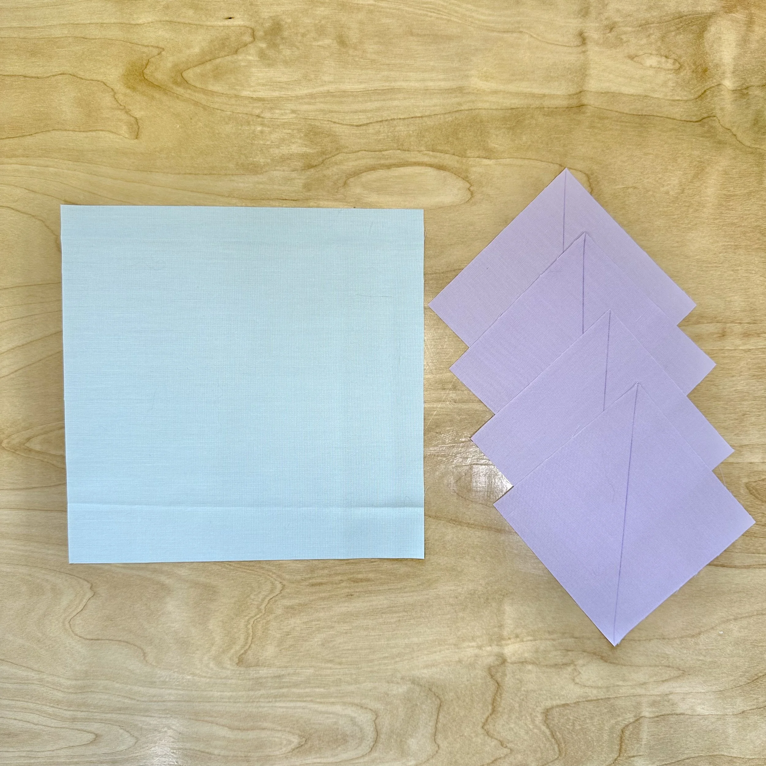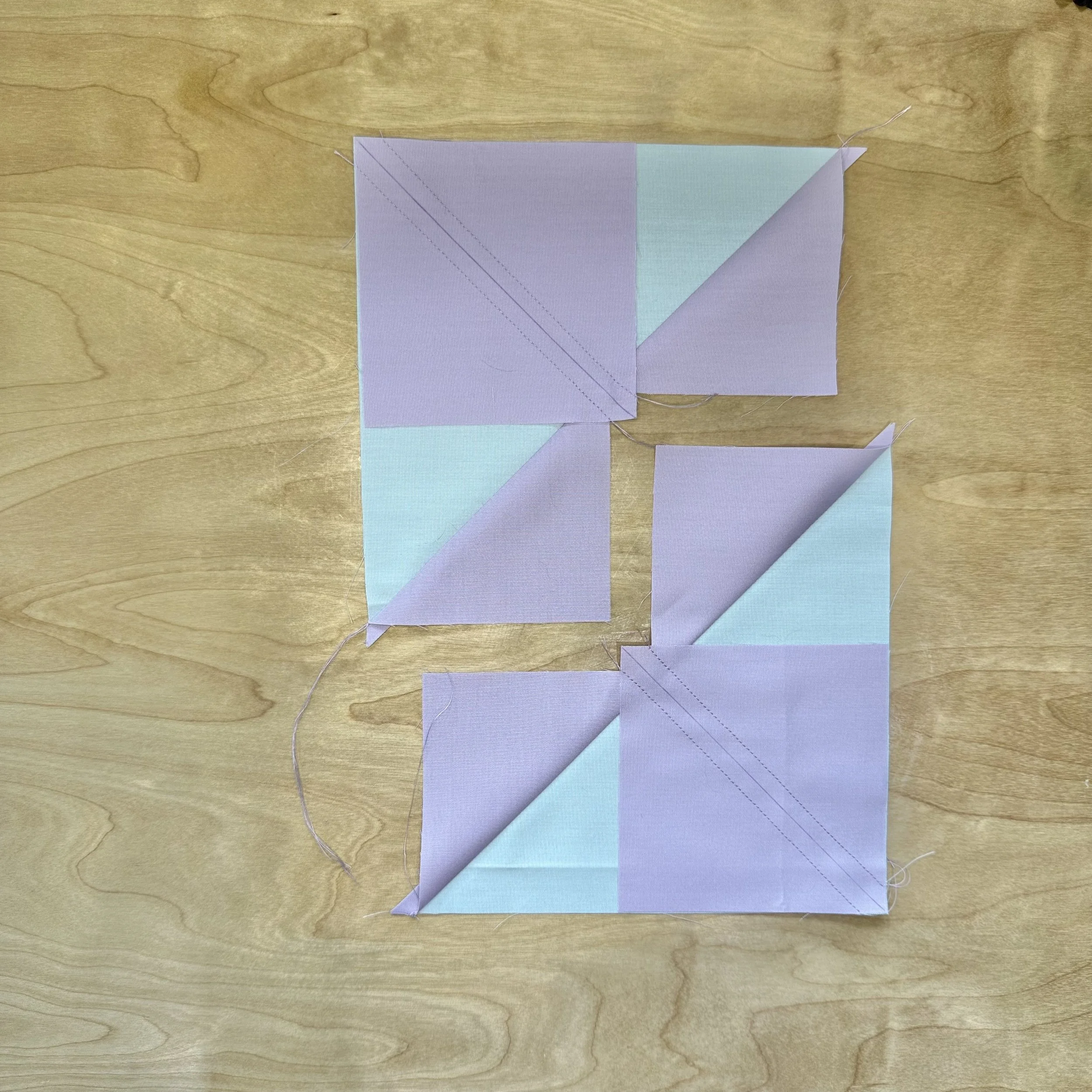 Cut along each drawn diagonal line, to create four separate units. Press to newly added triangles away from the main piece. I typically press my seams towards the sky, but again, if you want, press them open. Pressing them open does help if you find they are a bit too small.